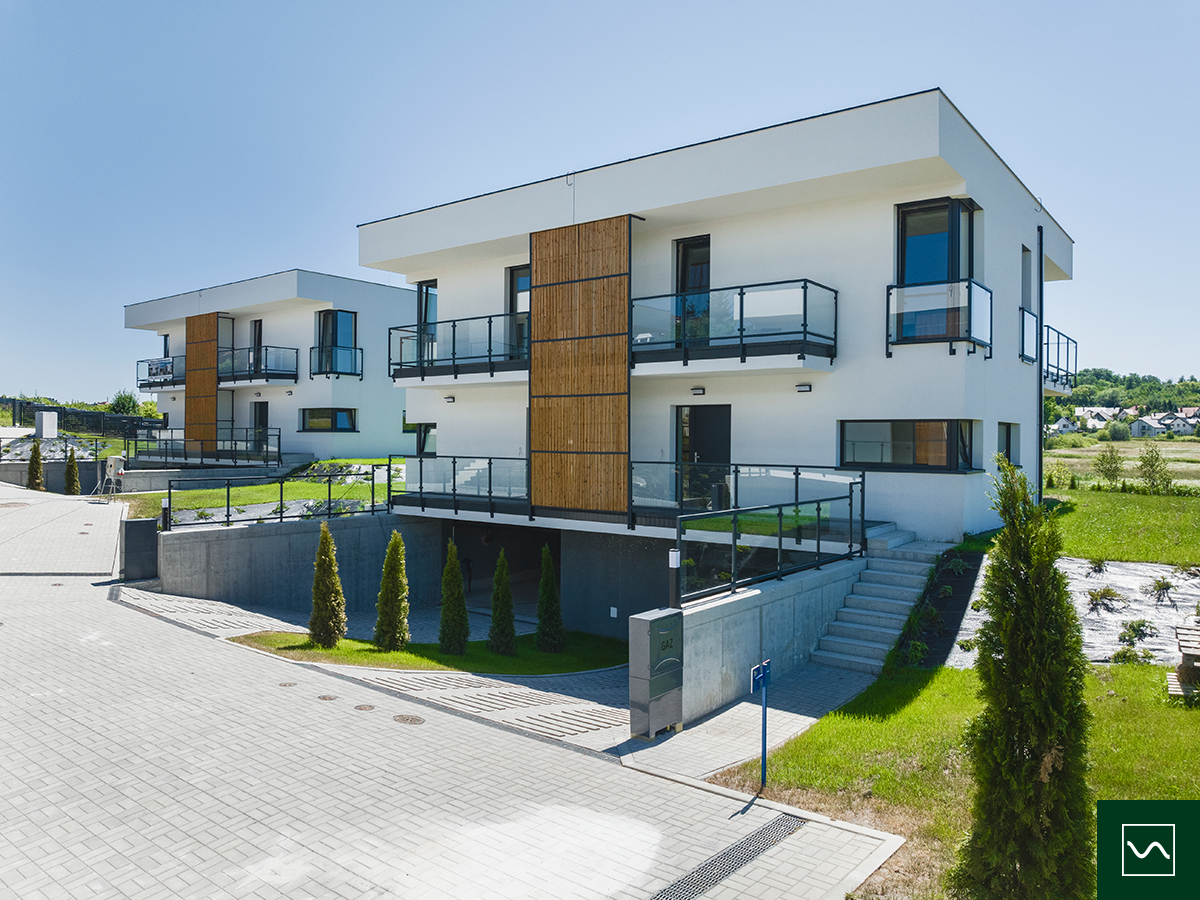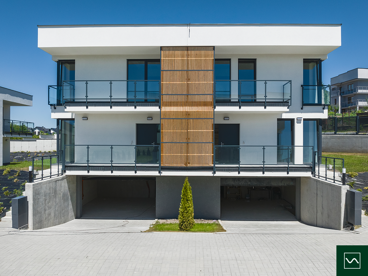 Prezentowana realizacja to przykład kompleksowej dostawy i montażu stolarki okiennej i drzwiowej wykonanej przez firmę Novator Dachy Okna Elewacje dla inwestycji deweloperskiej realizowanej we współpracy z Confisio. Nowoczesne osiedle kameralnych bliźniaków powstało w zielonej części Krakowa - w Skotnikach, w bezpośrednim sąsiedztwie terenów objętych ochroną Natura 2000. Inwestycja łączy wysoką estetykę architektury z funkcjonalnymi rozwiązaniami, w których kluczową rolę odgrywają energooszczędne okna, solidne drzwi zewnętrzne oraz nowoczesne systemy przesuwne.