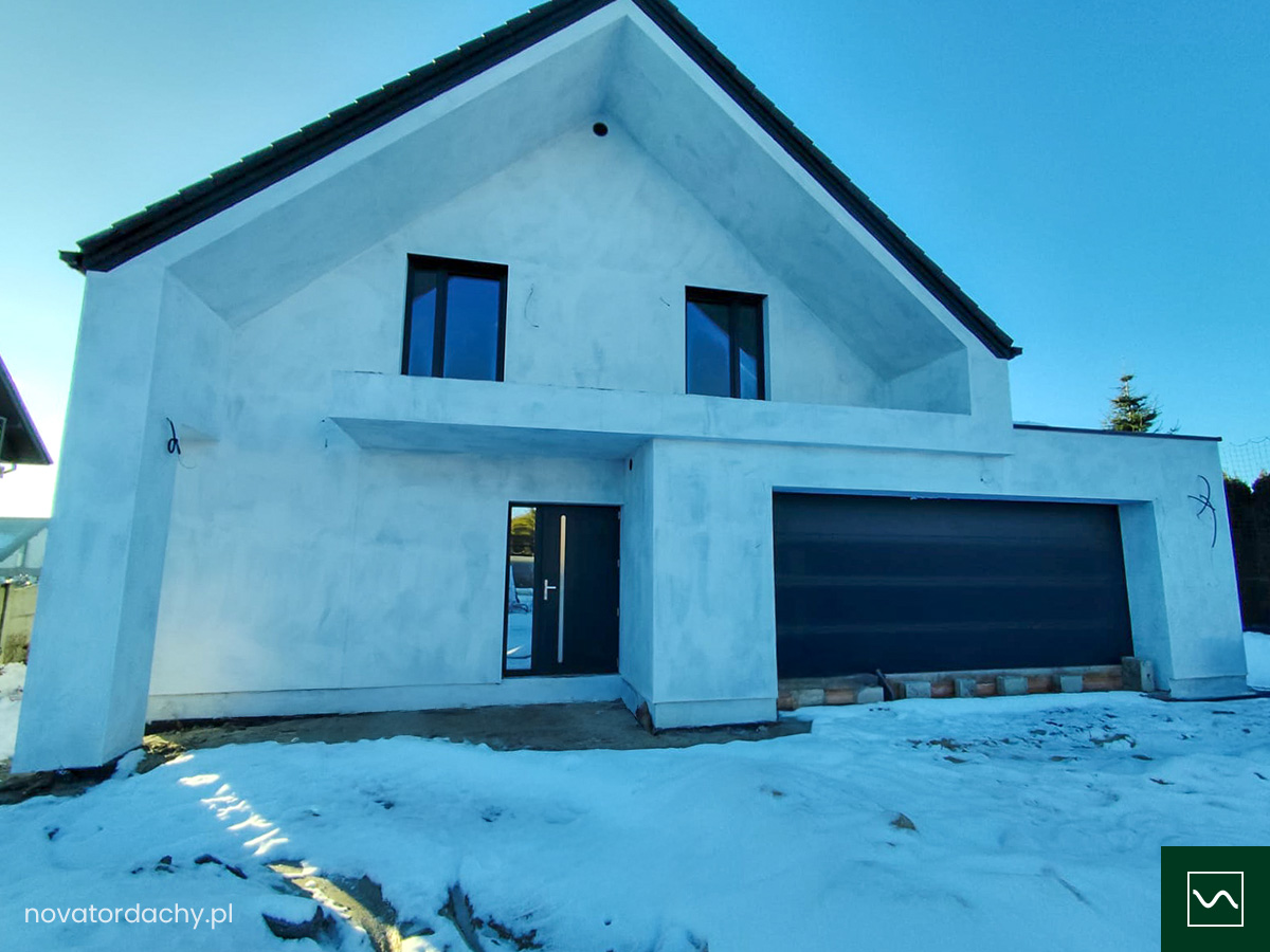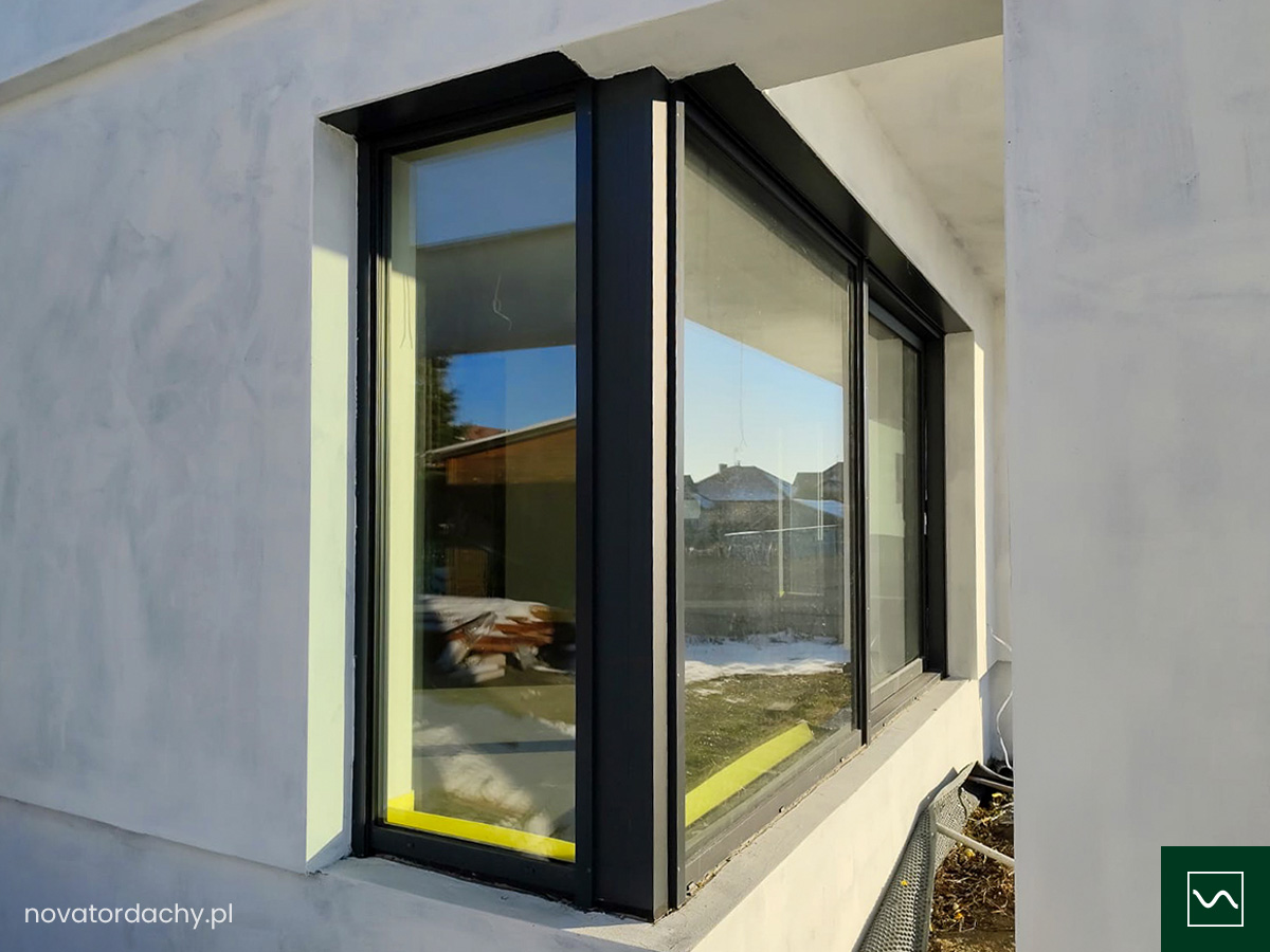 Firma Novator Dachy Okna Elewacje prezentuje kolejną realizację z zakresu dostawy i profesjonalnego montażu stolarki okiennej i drzwiowej premium, wykonanej w technologii zapewniającej najwyższą szczelność, trwałość oraz doskonałe parametry energooszczędne. Na inwestycji zastosowaliśmy okna Vetrex Lum’up w kolorze ciemnoszary jedwab, zamontowane w systemie ciepłego montażu trójwarstwowego, z wykorzystaniem energooszczędnych listew podparapetowych oraz podwalin z klinarytu, co przekłada się na ograniczenie strat ciepła i komfort użytkowania budynku.