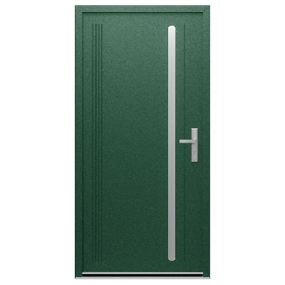 - Drzwi premium Vetrex, model Lisse w kolorze RAL 7016 Struktura, zamontowane na poszerzeniach z klinarytu.